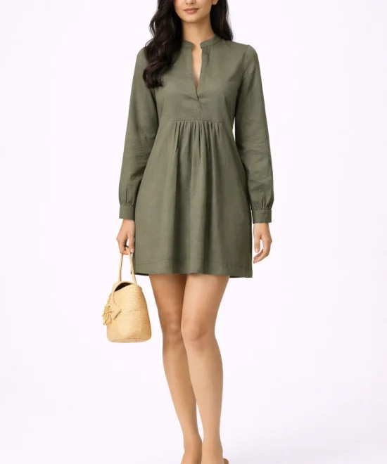 Elegant Olive Green Gathered Mini Dress