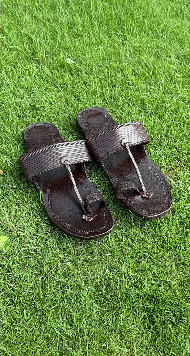 Barefoot Kolhapuri Sandals in Deep Brown