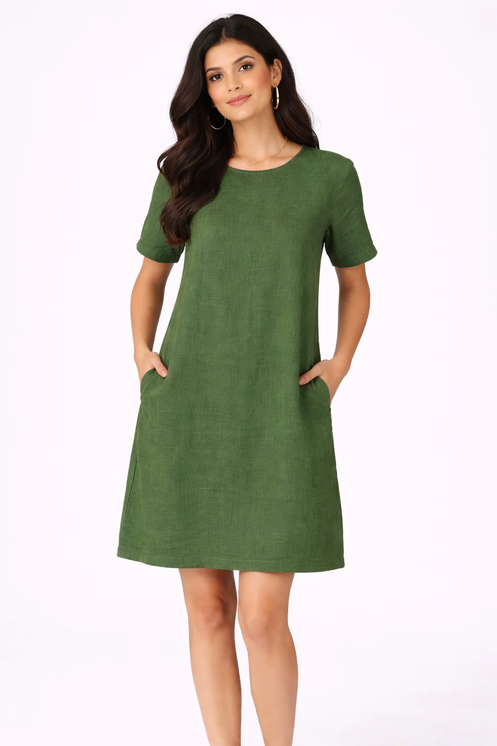 Classic Olive Green A-Line Pocket Dress
